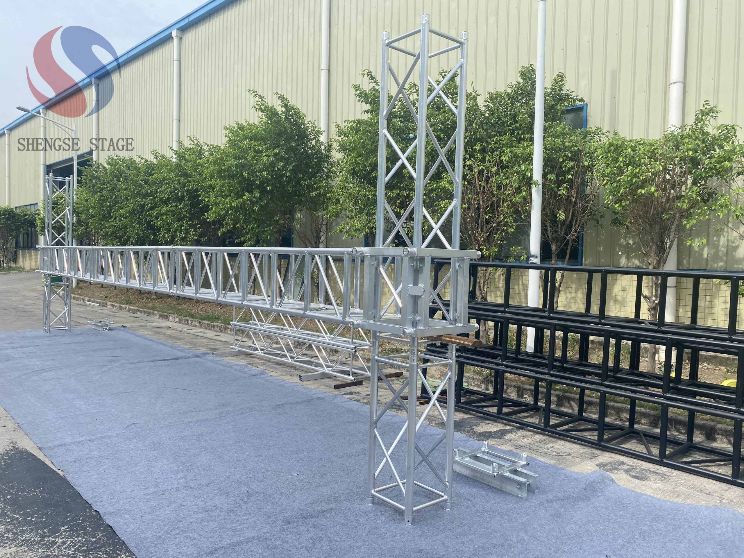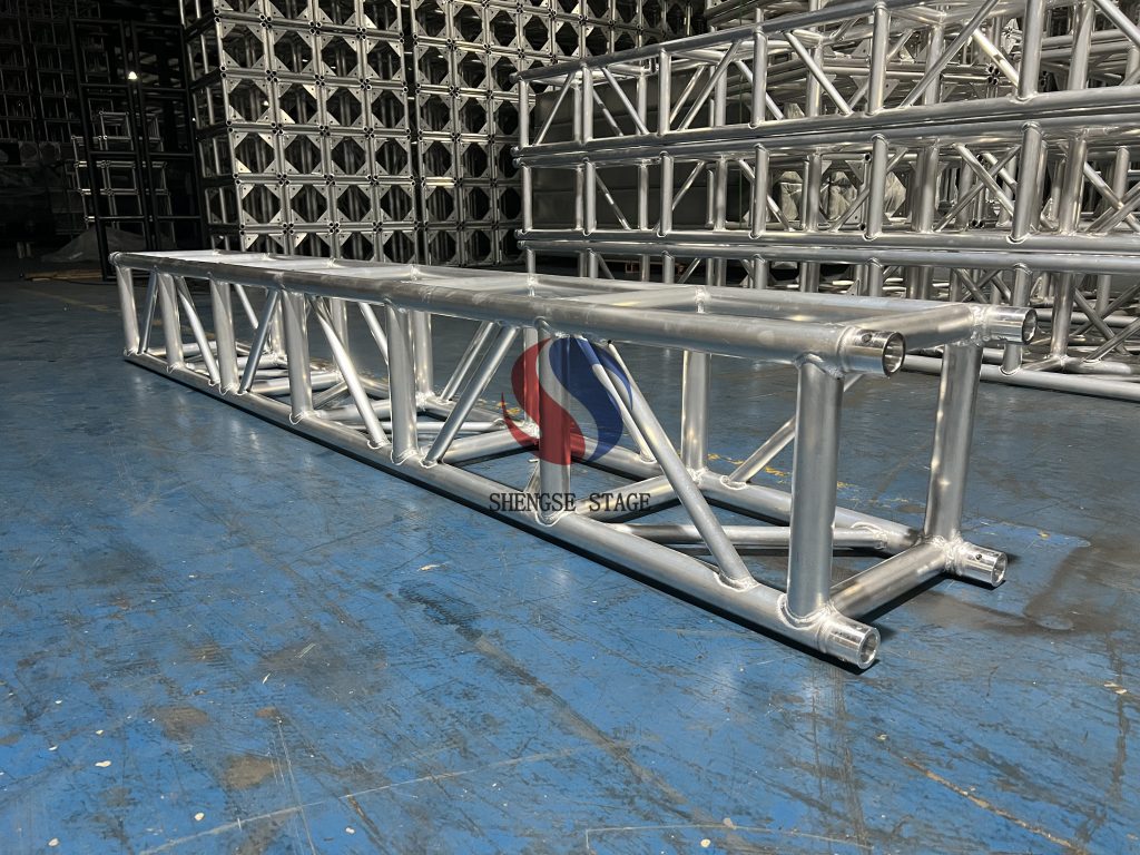 SHENGSESOARSTAGE offers a wide range of trusses with various dimensions and weight-bearing capacities for the event and entertainment industry. Our high-quality aluminum trusses are lightweight yet sturdy, making them perfect for indoor and outdoor events. With our cutting-edge technology and continuous product innovation, we can customize trusses to meet specific project requirements, ensuring safe and reliable structures for all types of events.